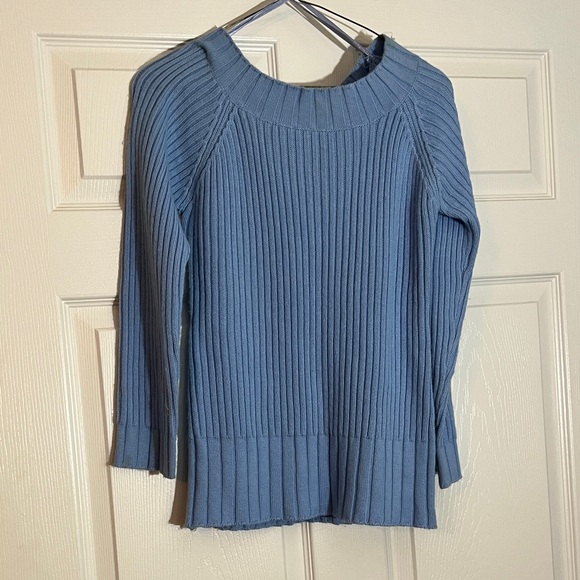 Stylish blue ribbed knit sweater. Perfect for casual wear.