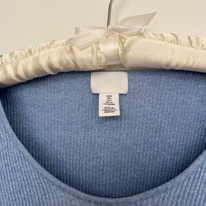 Blue Ribbed Knit Top