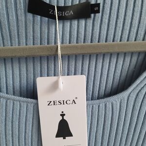Elevate your style with this chic blue ribbed knit top. Perfect for any occasion, this top offers both comfort and elegance.