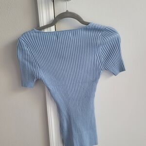 Blue Ribbed Knit Top