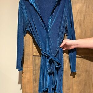 Elegant blue ribbed mini dress perfect for any occasion. Features a stylish tie-front design and long sleeves for a chic look. Never worn