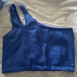 Elevate your style with this AERIE blue ribbed one-shoulder top. Perfect for any occasion, it offers a trendy and comfortable fit.