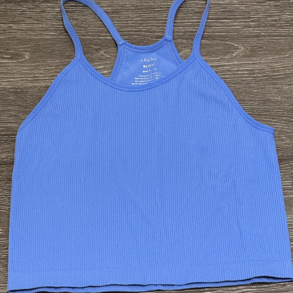 Blue Ribbed Racerback Tank Top