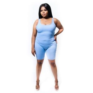Blue Ribbed Romper