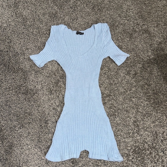 Light blue ribbed texture romper. Body con tight fitting. Stretchy. Soft and comfortable feel.