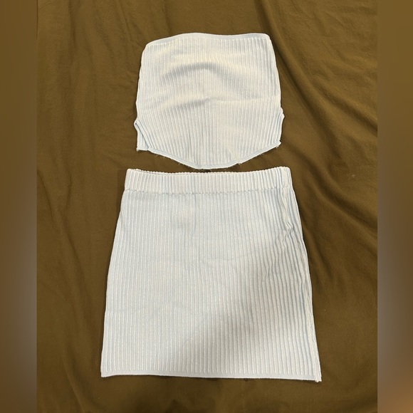 Blue ribbed tube top and skirt ribbed set. Corset style top. Despite picture this set is a bright baby blue. Never worn