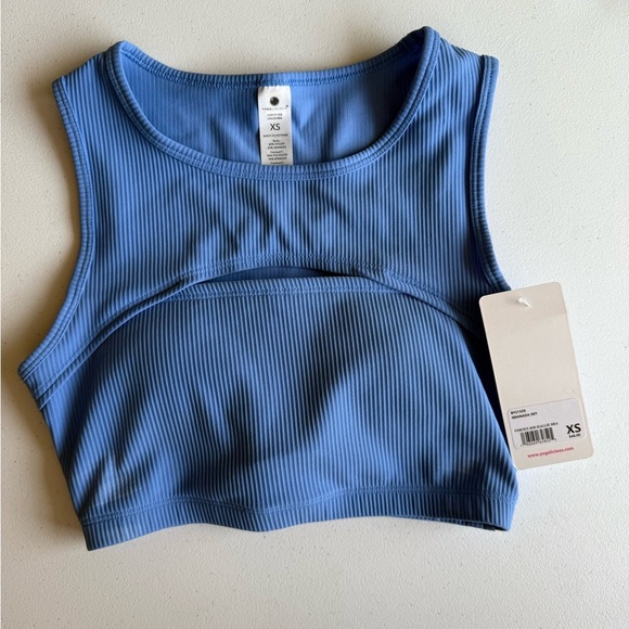 Blue Ribbed Sports Bra Top