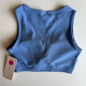 Stylish blue ribbed crop top. Perfect for casual wear.