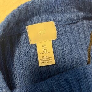 Stay warm and stylish with this blue ribbed sweater. Perfect for any casual occasion.