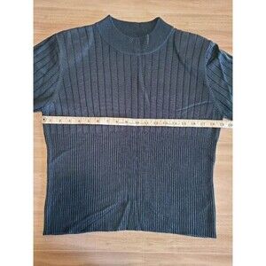 Blue Ribbed Sweater Shirt Short Sleeve Mock Neck Knit Top Casual Stretchy Tee