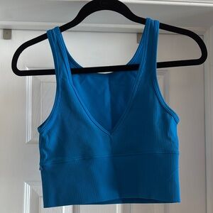 Stylish blue ribbed tank top. Perfect for the gym, also reversible