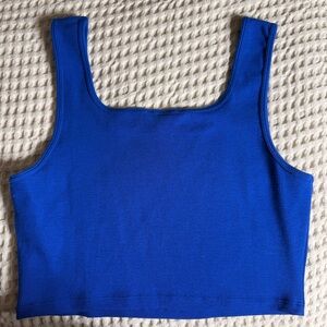 Elevate your wardrobe with this vibrant blue ribbed tank top. Perfect for layering or wearing on its own, this top offers both style and comfort.
