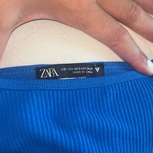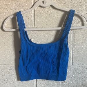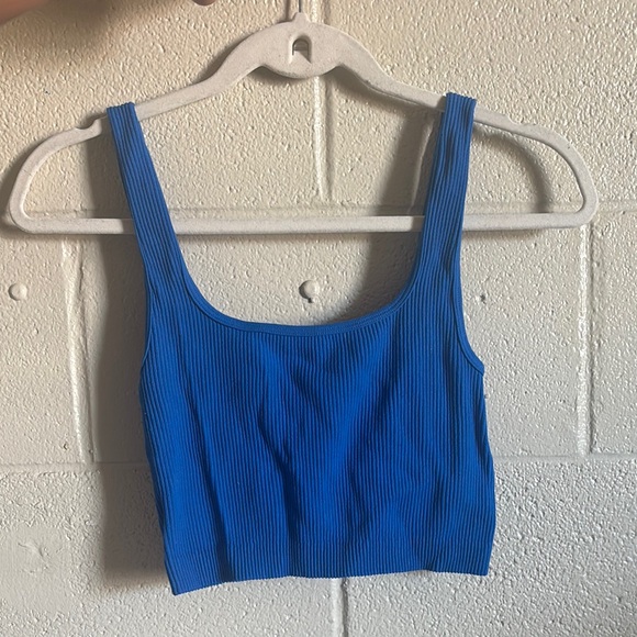 This stylish blue ribbed tank top is perfect for any casual outing. Its vibrant color adds a pop to your wardrobe.