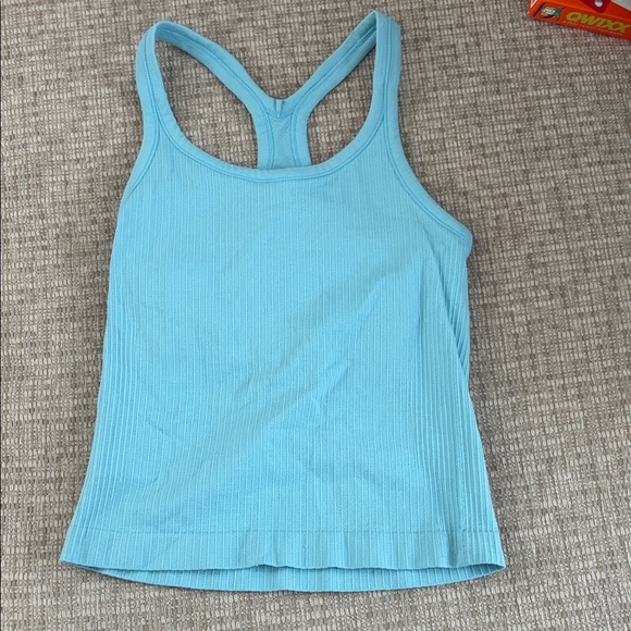 Stylish blue ribbed tank top. Perfect for casual wear.