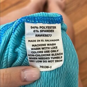 This blue tank top showcases a ribbed texture and a stylish racerback design with a unique twisted detail. Crafted from lightweight and stretchy material, it offers a comfortable fit ideal for workouts or casual outings.