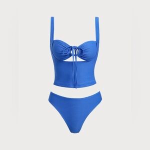 Make a splash with this elegant blue ribbed bikini set. Perfect for beach outings and poolside relaxation.