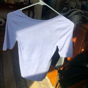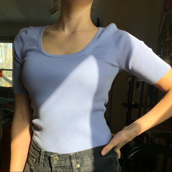 Hello springtime! I’m obsessed with this pastel blue shade. Never worn! Banana republic fitted but stretchy ribbed top. Tag is medium. Model is size small.
