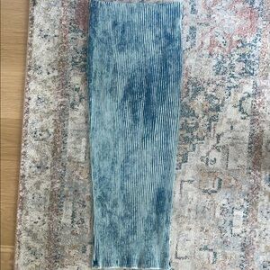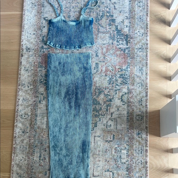 Stylish blue ribbed two-piece set. Includes a crop top and matching skirt. Perfect for casual outings.. stretchy set in excellent condition
