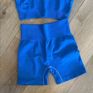 Stylish blue ribbed workout set. Includes a crop top and high-waisted shorts. Perfect for fitness and casual wear. Only worn twice! Send me an offer!