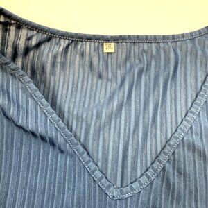 Blue Ribbed V-Neck Short Sleeve Top, Lightweight Knit, Plus Size 2XL