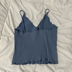 Blue Ribbed Women's Top