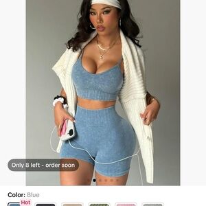 Stylish blue ribbed high-waisted shorts. Perfect for casual outings or workouts.
