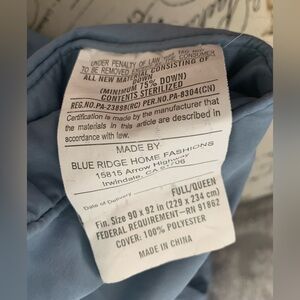 Blue Ridge Home Fashions Down Comforter: Queen/Full size, Blue, Polyester Microfiber Cover, Measurements: 90x92 inches