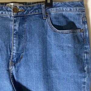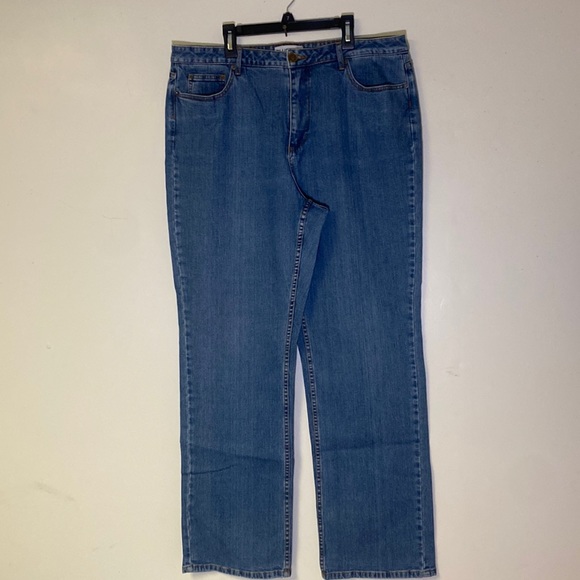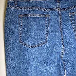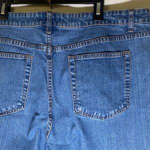 Blue jeans, size 16, 5-pocket, straight leg. Approximate measurements waist 37”, crotch 11.5”, length 43”. GUC