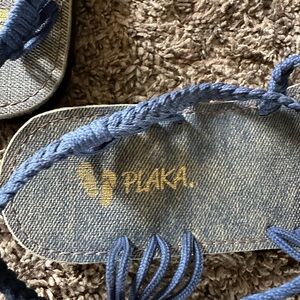 Step out in style with these blue Plaka women's sandals. Perfect for any casual outing, these sandals offer comfort and style. Worn on once!