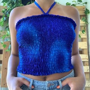 ***Blue Rima Tube Top... Made with a stretchy material... Very cute for festivals, the beach, and going out!... Great condition... The only flaw is a tiny loose string pictured above on the ties... Please message me with any questions you may have 😊💙!***