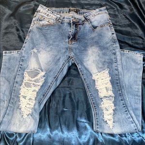 Stylish and comfortable women's blue jeans. Rips in front and back. Real pockets!