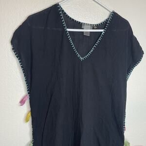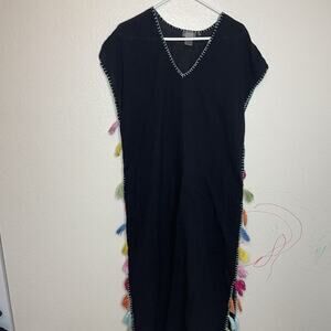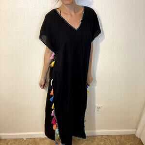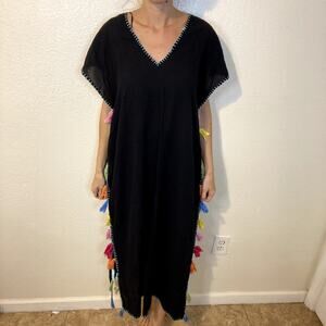 Blue Rod Beattie Long Cover Up Maxi Dress Cotton Black Rainbow Tassels Beach M