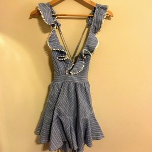 cutest little romper - light blue with white stripes, X back with tie; the shorts part of the romper are made so well and super flattering - size M; only worn a couple of times, in really good condition