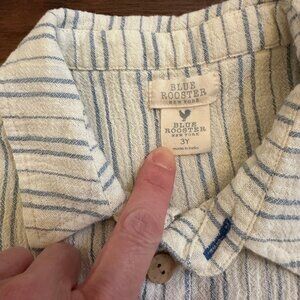 Boys' Jack Shirt from Blue Rooster/Pink Chicken in Riviera Stripe pattern. Material is a thicker white cotton gauze. Great condition, size 3Y.