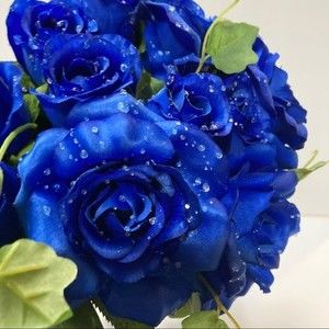 Blue Roses Artificial Flowers Dew Drop Rain Drop 2 Bunches 16"