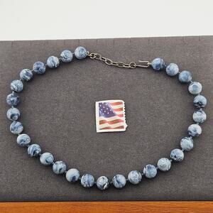 Blue Round Marbled Beaded Necklace Swirl Earthy Boho Natural Woodland Fairycore