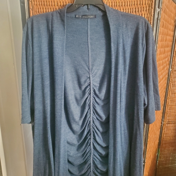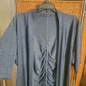 Stylish blue cardigan with ruched detailing on the back. Lays pretty. Soft material. Perfect for layering.