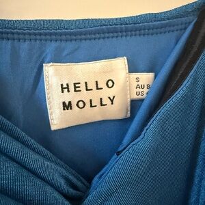 Shimmery Blue ruched strapless Mini Dress with center cut out. Hello Molly. Worn only once. Side zip enclosure