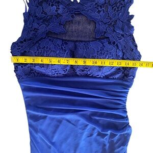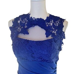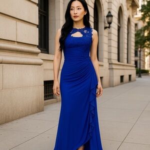 Betsy & Adam Blue Ruffle Side Tiered Formal Gown size 8