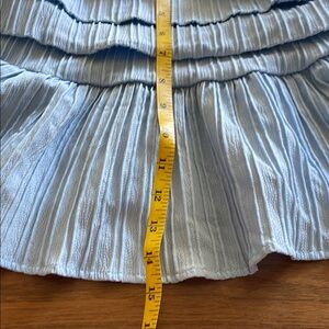 Stylish blue ruched tank with front pleats! Measurement top to bottom is about 15 inches. This has places inside to attach two straps (not included).
