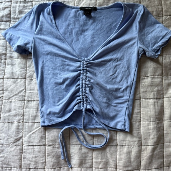 Blue Ruched V-Neck Top
