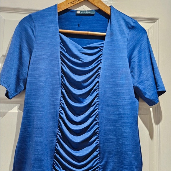 Elevate your style with the Blue Ruched Women's Top. This elegant piece features a flattering ruched design, perfect for any occasion.