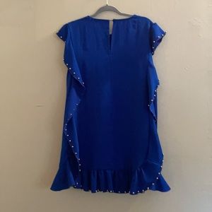 Royal blue dress. Ruffle detail on the side that has silver beads. Really pretty and fun dress! In like new condition