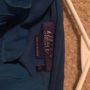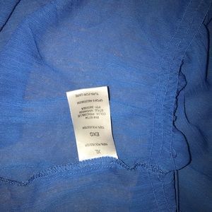 Royal blue ruffle top. Perfect to make a work outfit pop or spice up a night up. Sleeveless button down. Somewhat see through.