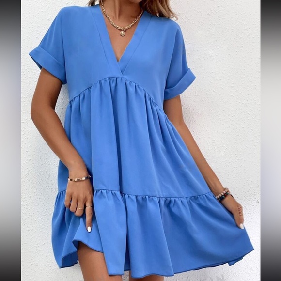 Blue Ruffle Hem Dress