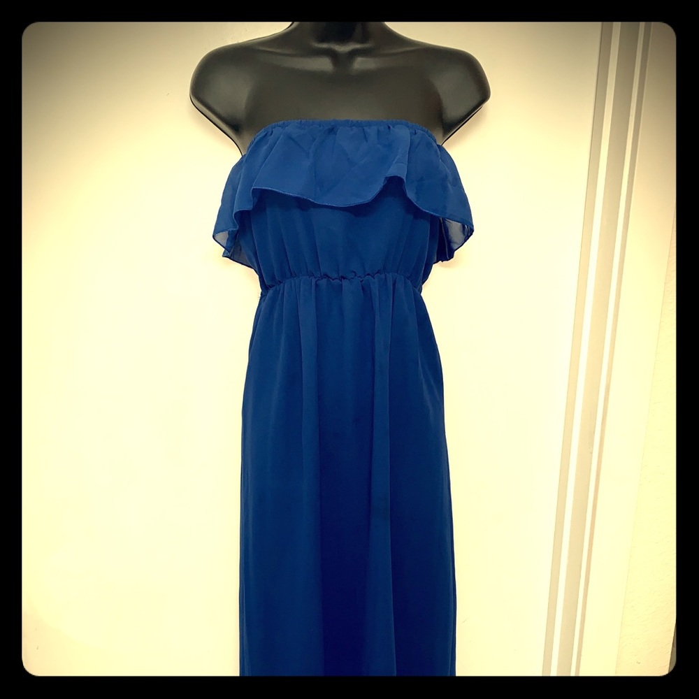 Royal Blue Ruffled tube top maxi dress. Ruffle hem at top and bottom. Lovely summer dress.