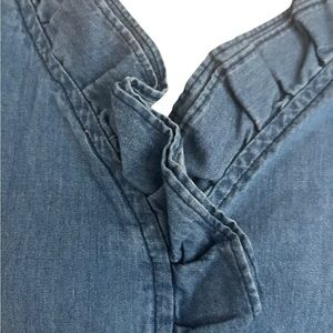 Elegant lightweight blue denium midi dress with charming ruffle details. Side zip. Never worn. 100% cotton. Perfect for any occasion.