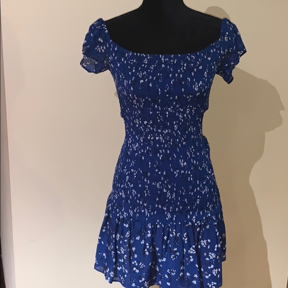 - Blue Ruffle Mini Dress with white flowers