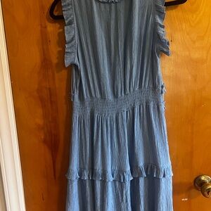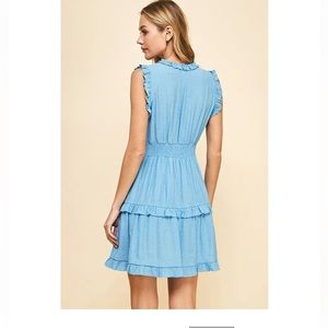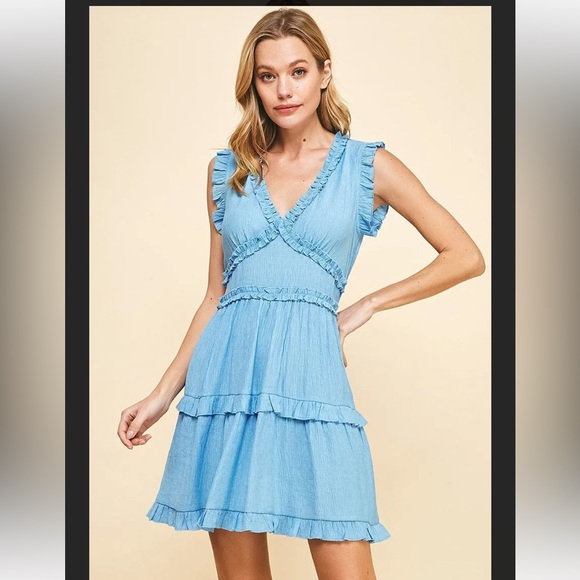 Chic and stylish blue mini dress with ruffle details. Perfect for any occasion.