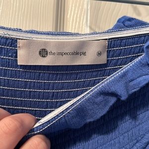 Blue ruffle skort in a size Medium. Pretty worn. Very comfortable and perfect for casual events and for the beach!
